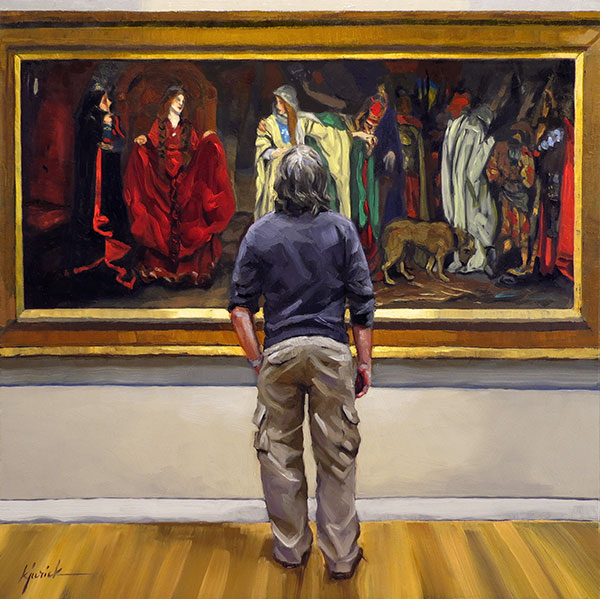 My small solo show opens tonight with a reception at the Anne Irwin Fine Art Gallery here in Atlanta - titled Museum Hours. This painting is one of twelve in the grouping - from the National Gallery of Art in Washington, DC, a close gathering in front of 'The Old Violin' by William Michael Harnett with 'Giant Magnolias on a Blue Velvet Cloth' by Martin Johnson Heade.
