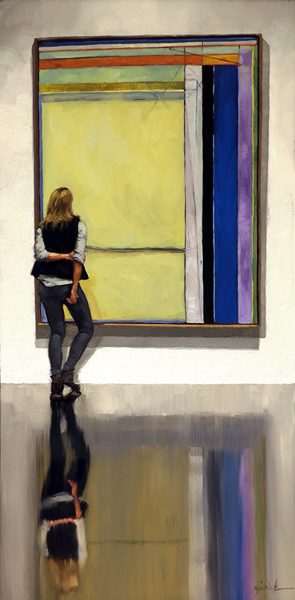 A new painting for the upcoming show at Robert Lange Studios - a woman viewing Mary Cassatt's Little Girl in a Blue Armchair in the National Gallery of Art in Washington DC.  I framed the print of this painting many, many times in my years as a framer and I can attest that seeing it in person is so much more impressive - largely due to the vivid blue-aquas of the overstuffed chairs.  Most don't even notice the little dog napping on the chair on the left seat until they see it in the museum.